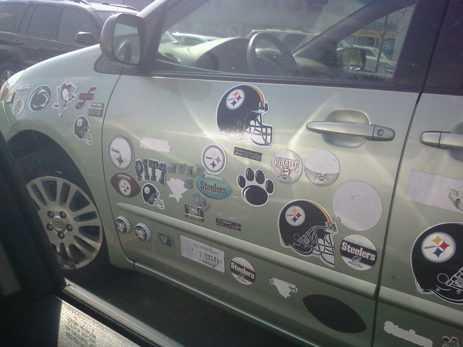 The Stickermobile! Total devotion to every team ever!