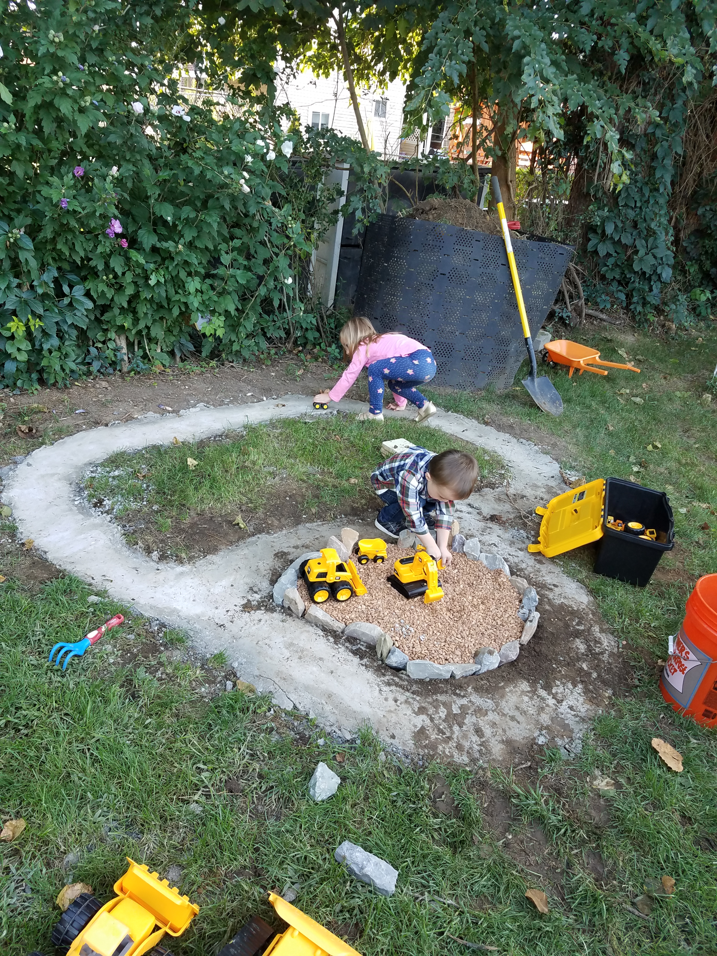 September 9, 2017 at 3024 × 4032 in Backyard Race Car Track & …Dinosaur Garden? 🚚🦕