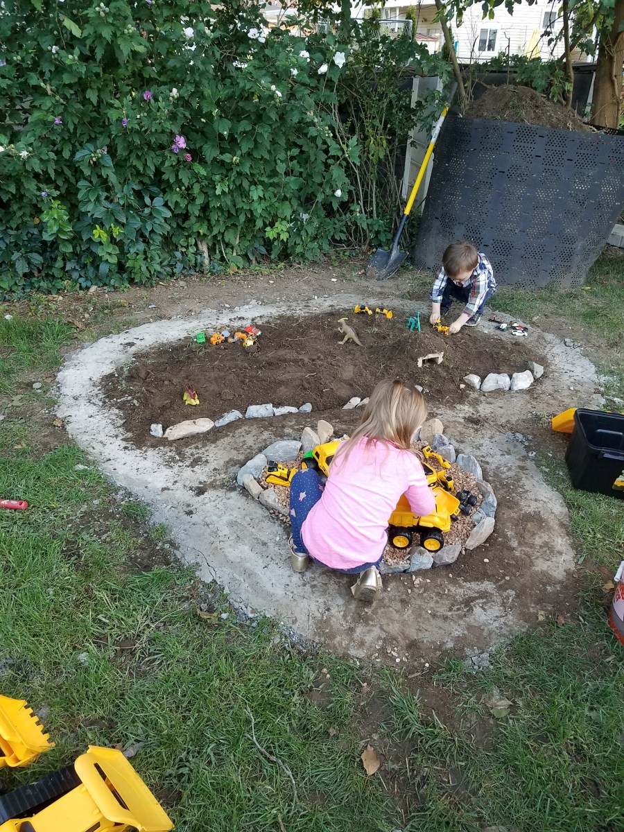 September 9, 2017 at 3024 × 4032 in Backyard Race Car Track & …Dinosaur Garden? 🚚🦕