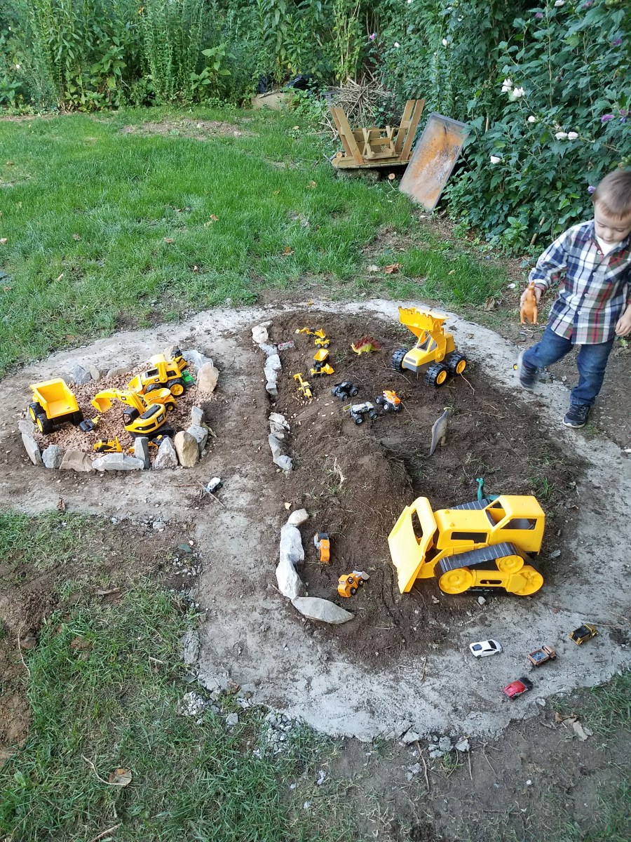 September 9, 2017 at 3024 × 4032 in Backyard Race Car Track & …Dinosaur Garden? 🚚🦕