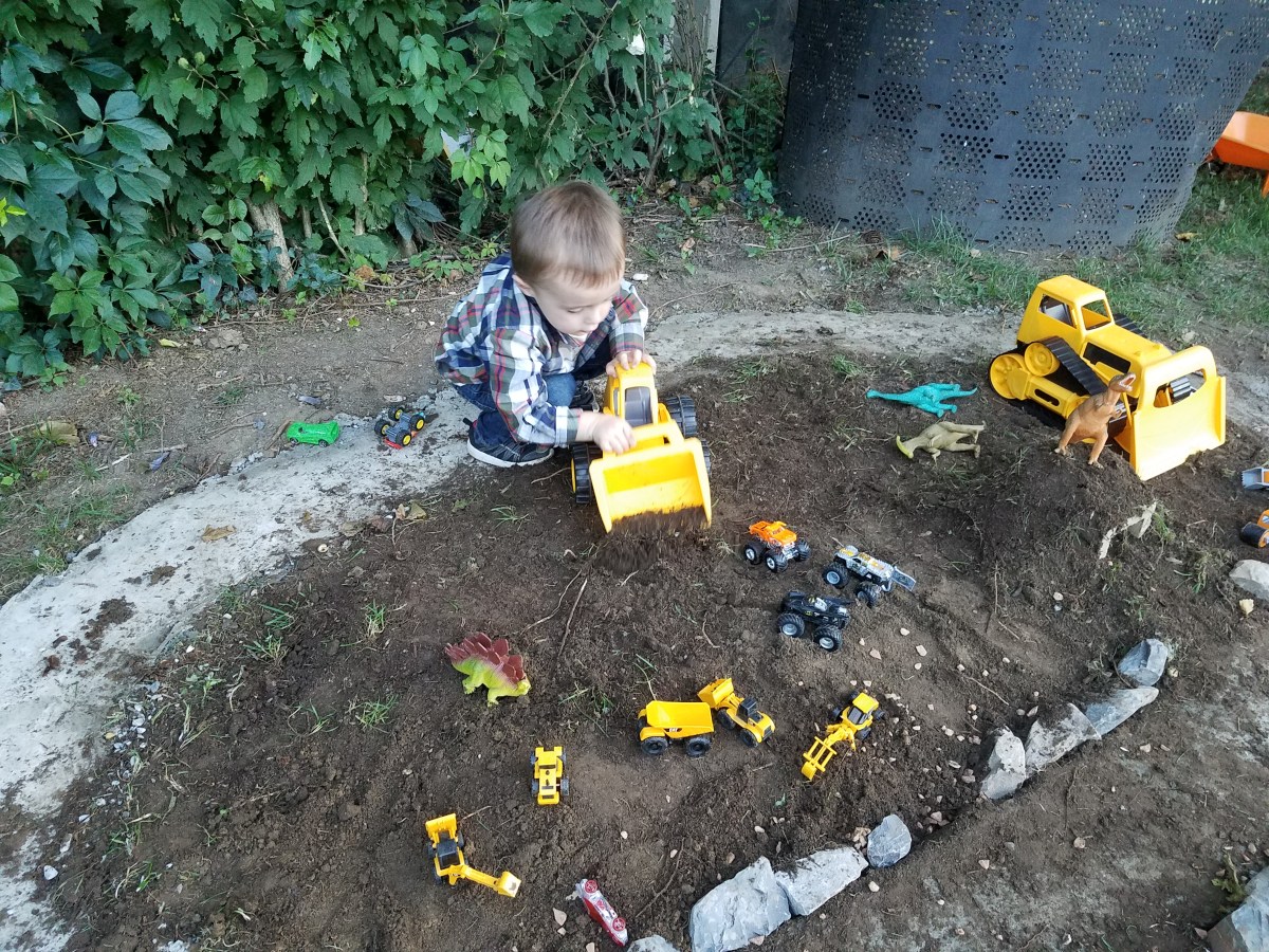 September 9, 2017 at 4032 × 3024 in Backyard Race Car Track & …Dinosaur Garden? 🚚🦕
