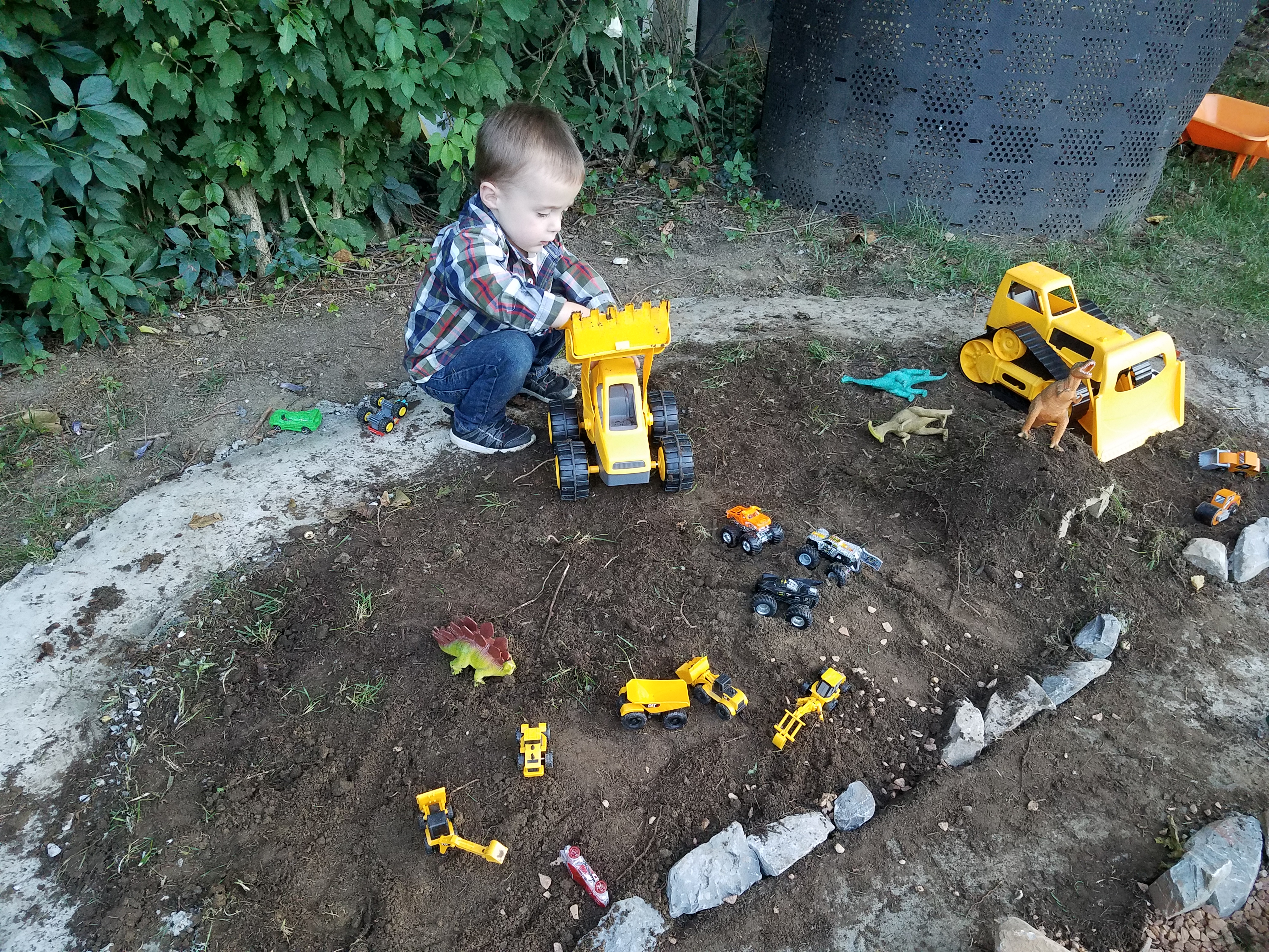 September 9, 2017 at 4032 × 3024 in Backyard Race Car Track & …Dinosaur Garden? 🚚🦕