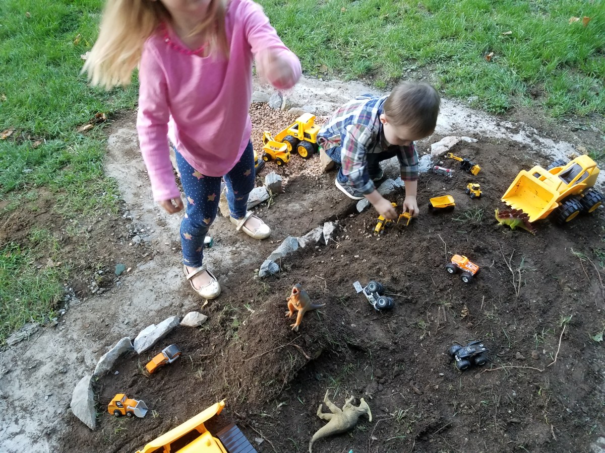 September 9, 2017 at 4032 × 3024 in Backyard Race Car Track & …Dinosaur Garden? 🚚🦕