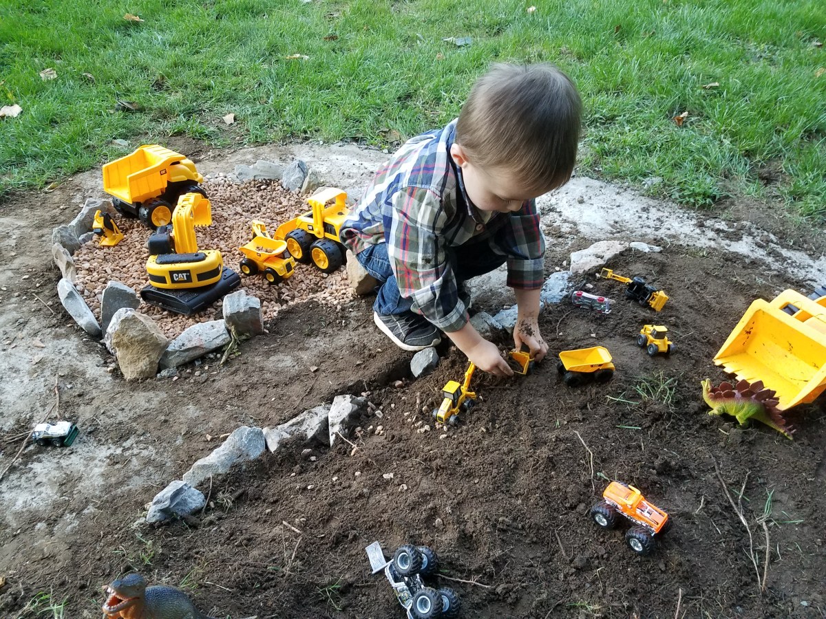 September 9, 2017 at 4032 × 3024 in Backyard Race Car Track & …Dinosaur Garden? 🚚🦕