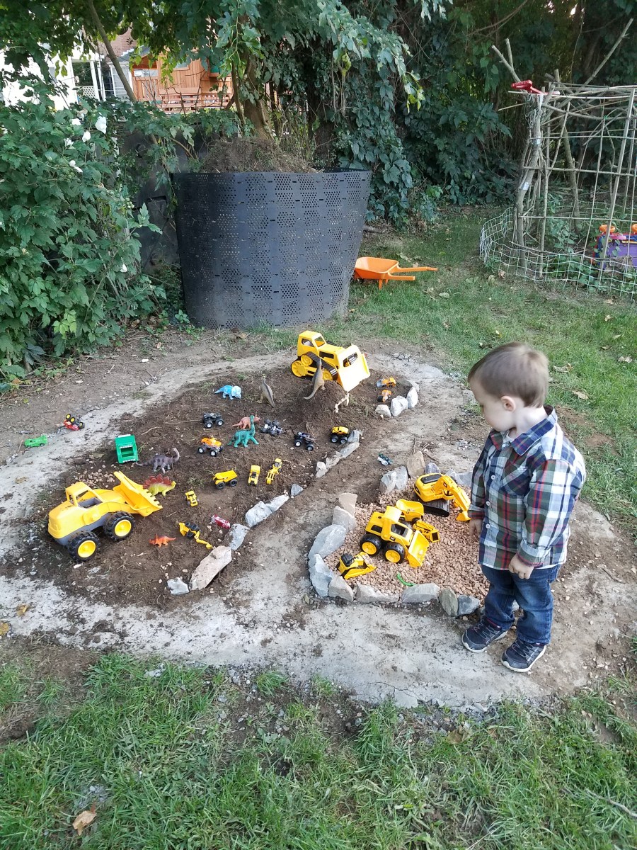 September 9, 2017 at 3024 × 4032 in Backyard Race Car Track & …Dinosaur Garden? 🚚🦕