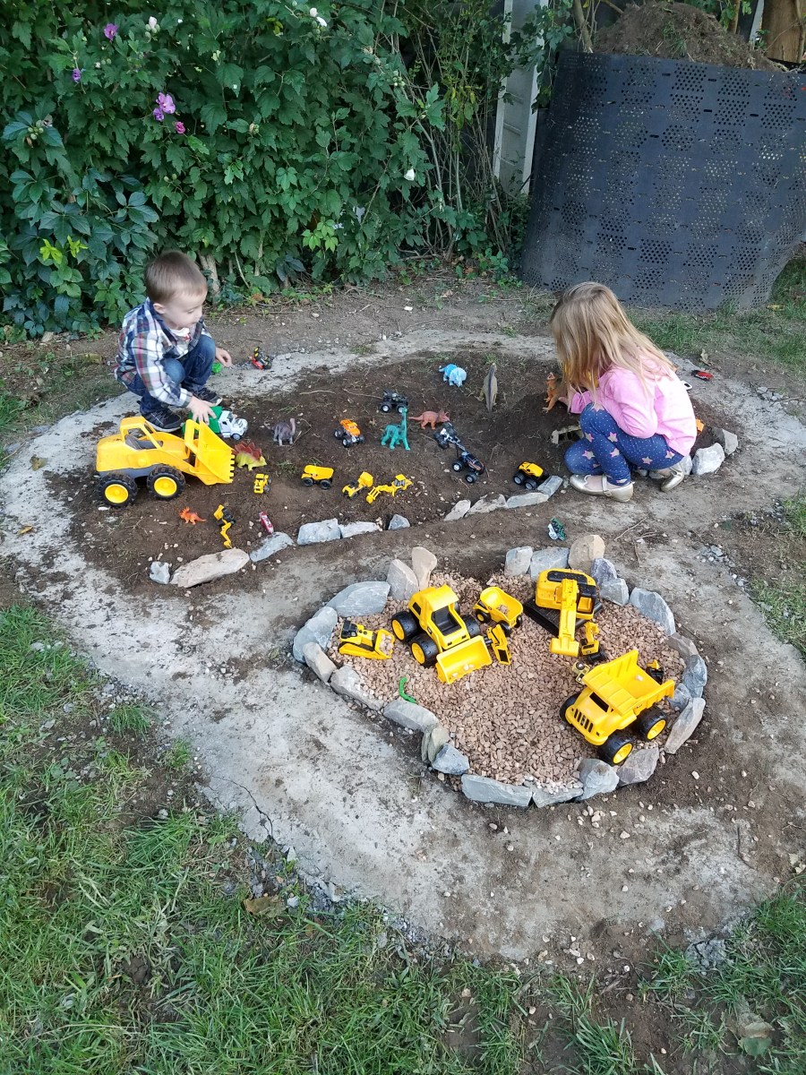 September 9, 2017 at 3024 × 4032 in Backyard Race Car Track & …Dinosaur Garden? 🚚🦕