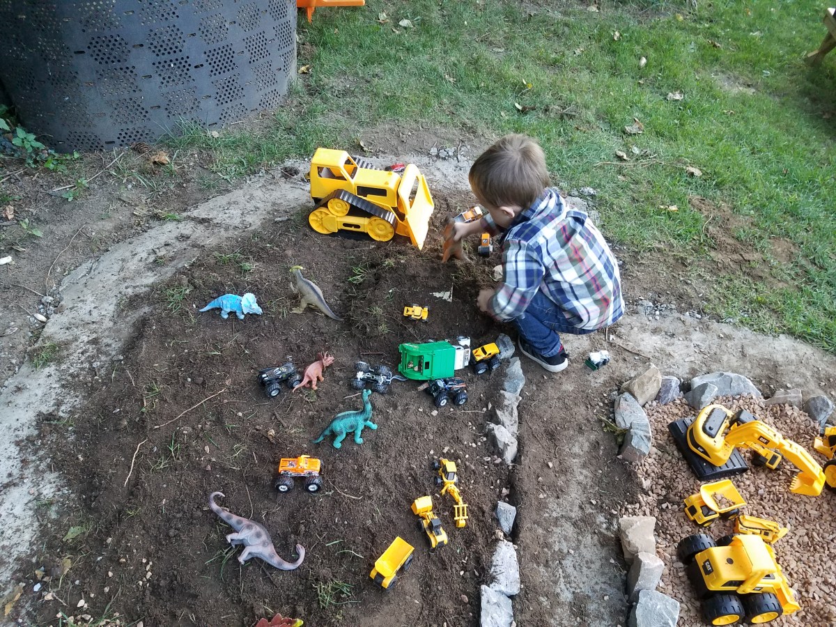 September 9, 2017 at 4032 × 3024 in Backyard Race Car Track & …Dinosaur Garden? 🚚🦕