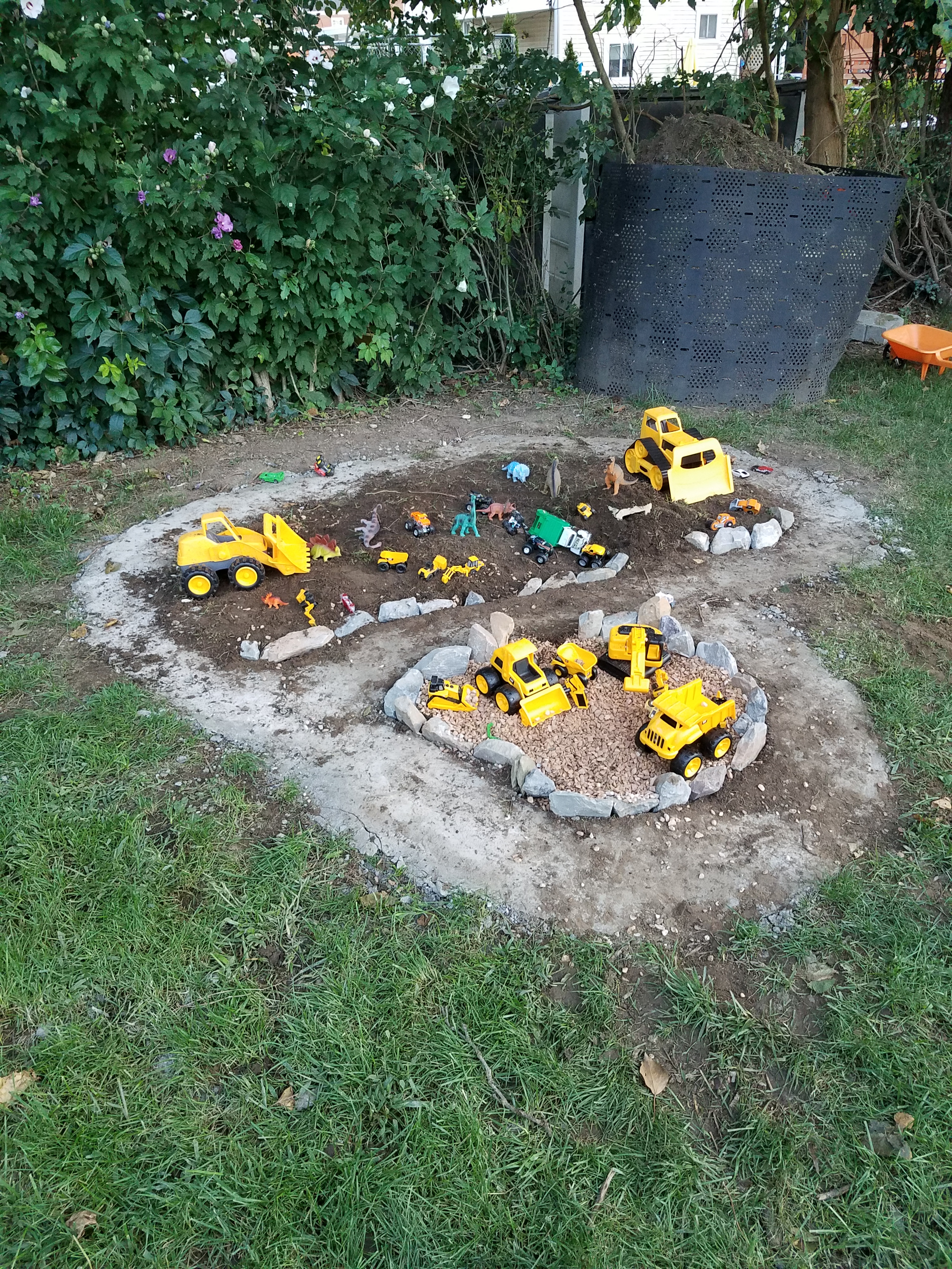 September 9, 2017 at 3024 × 4032 in Backyard Race Car Track & …Dinosaur Garden? 🚚🦕