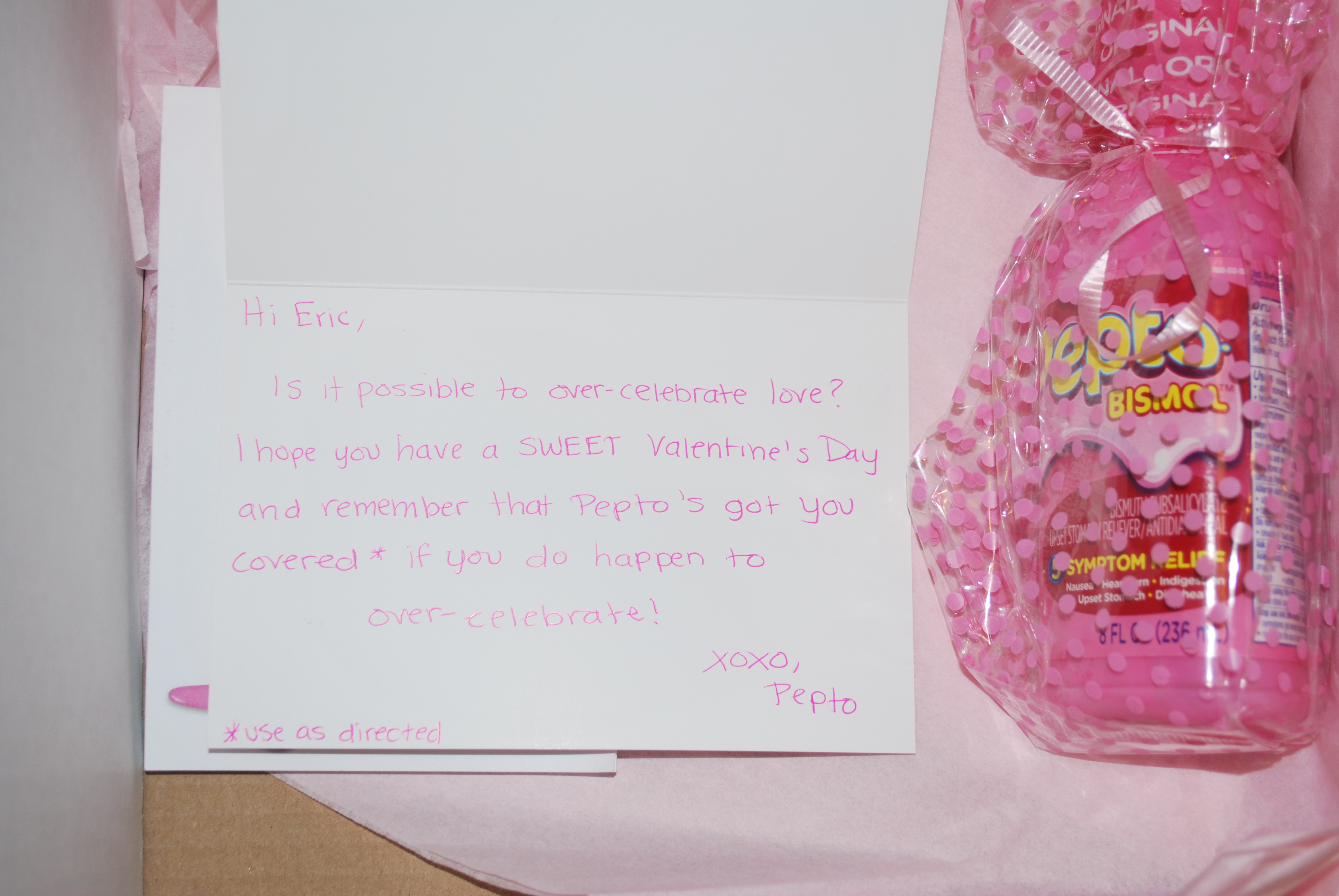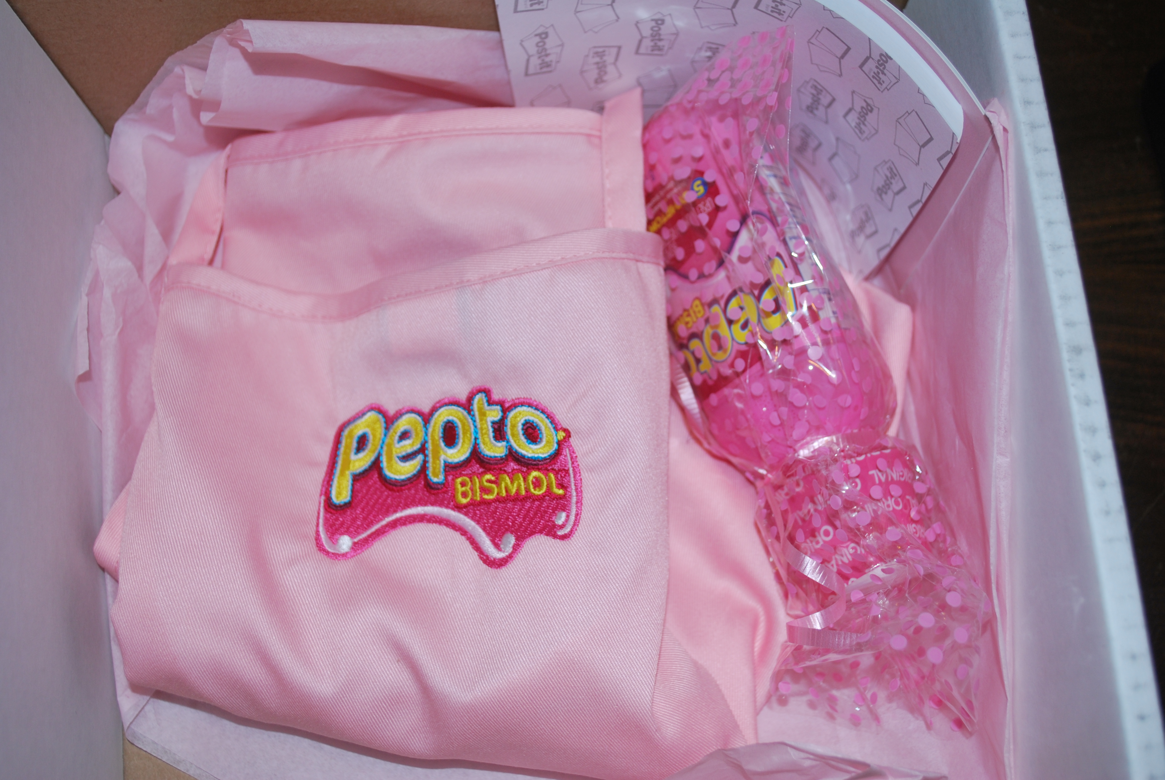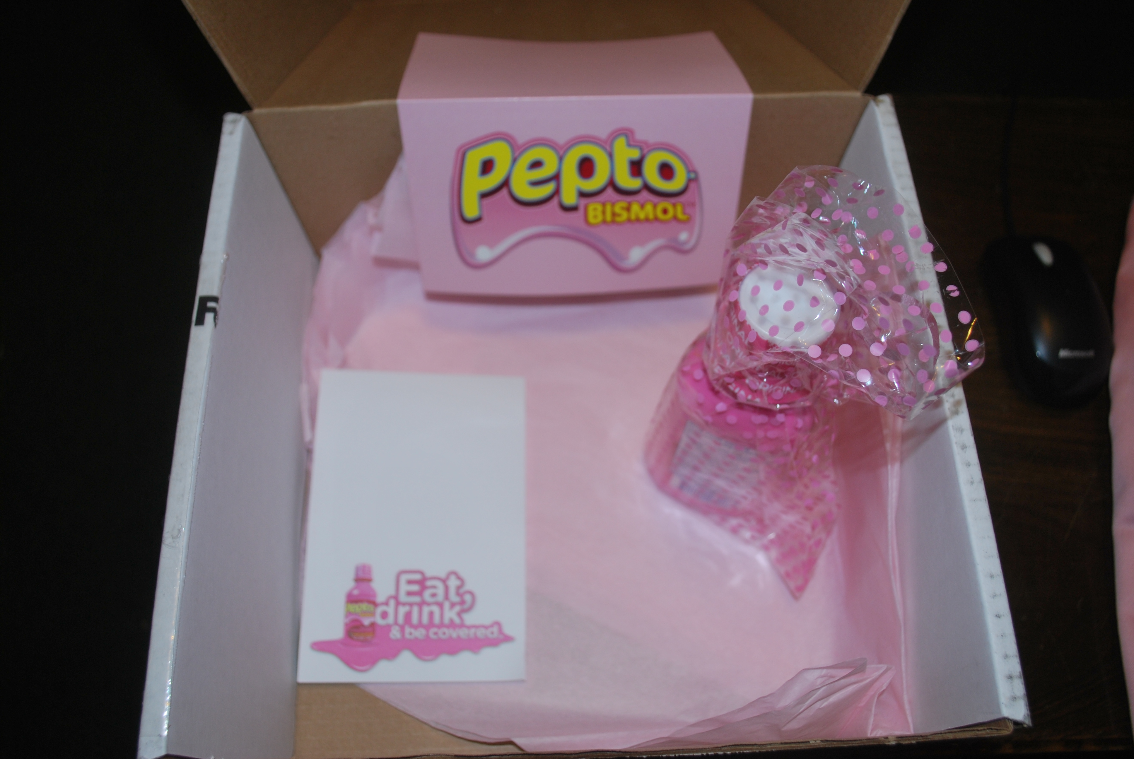 Yesterday, when I got home from work, I had a lovely box delivered by FedEx sitting on my front porch. It contained a bunch of goodies from my new friends at Pepto-Bismol.
