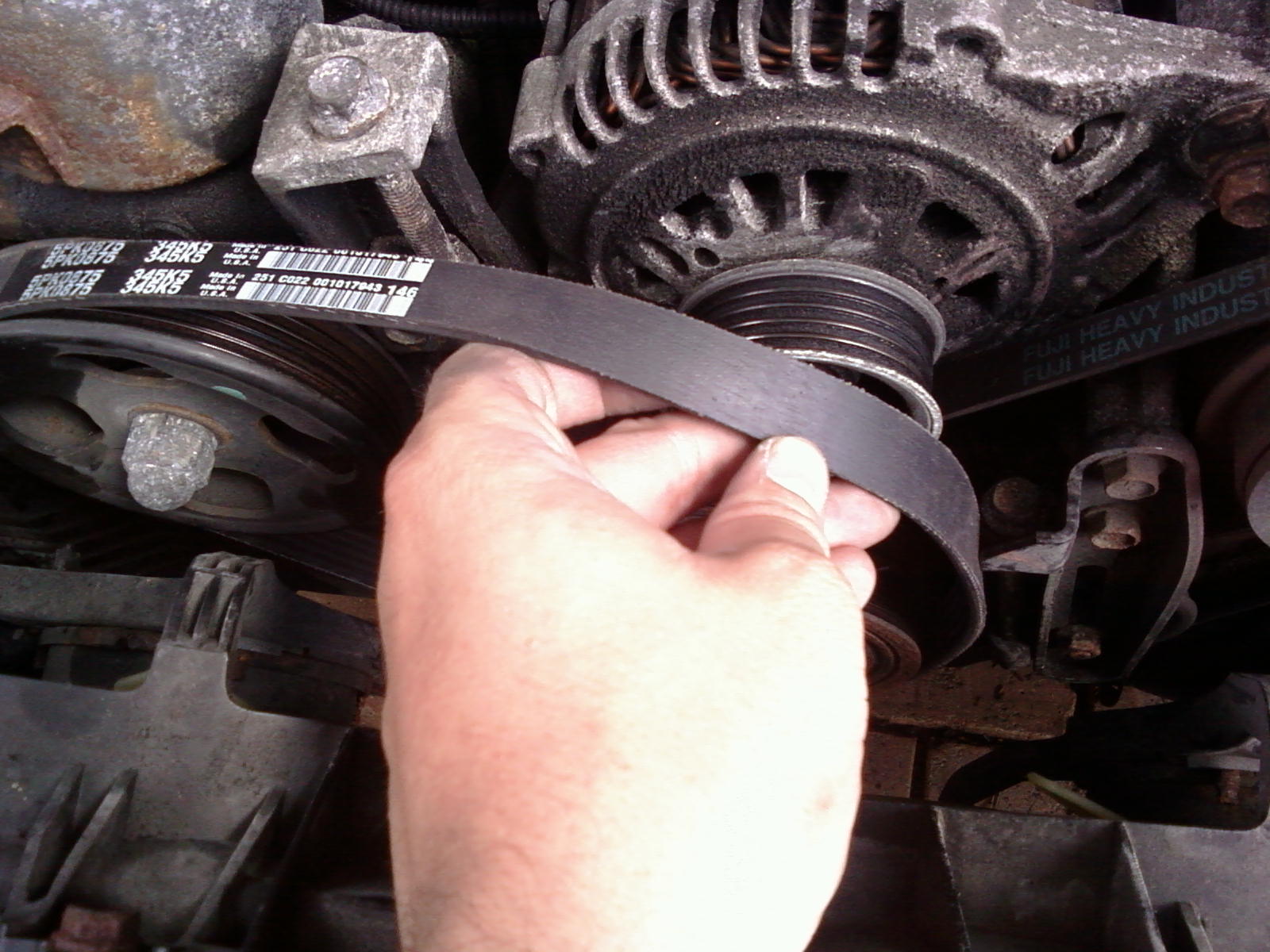 An interesting aside, that I will chuckle about until the end of time… The guy at Advanced Auto location1 tried to sell me a belt that was $18.99, but even thought the computer said there were 2 in stock… he couldn’t find them. So, he said there was one for $11.99. I asked if I should be worried about the difference in price… if it meant a great deal of difference in quality. He said “Well, yeah… but this is all we have. Basically, the cheap one is made overseas and the expensive one is made here.” That made me feel better. It’s a Subaru. I don’t care where the parts came from. They’re all probably from Japan or Mexico even though it was all assembled in Indiana. When I got the cheaper belt… and went to install it, it said “MADE IN U.S.A.” in big white letters. I literally laughed out loud. Can we get over this “other countries are inferior to us in making stuff” thing? It’s 2011. Advanced Auto ought to put a bullshit meter on that guy.