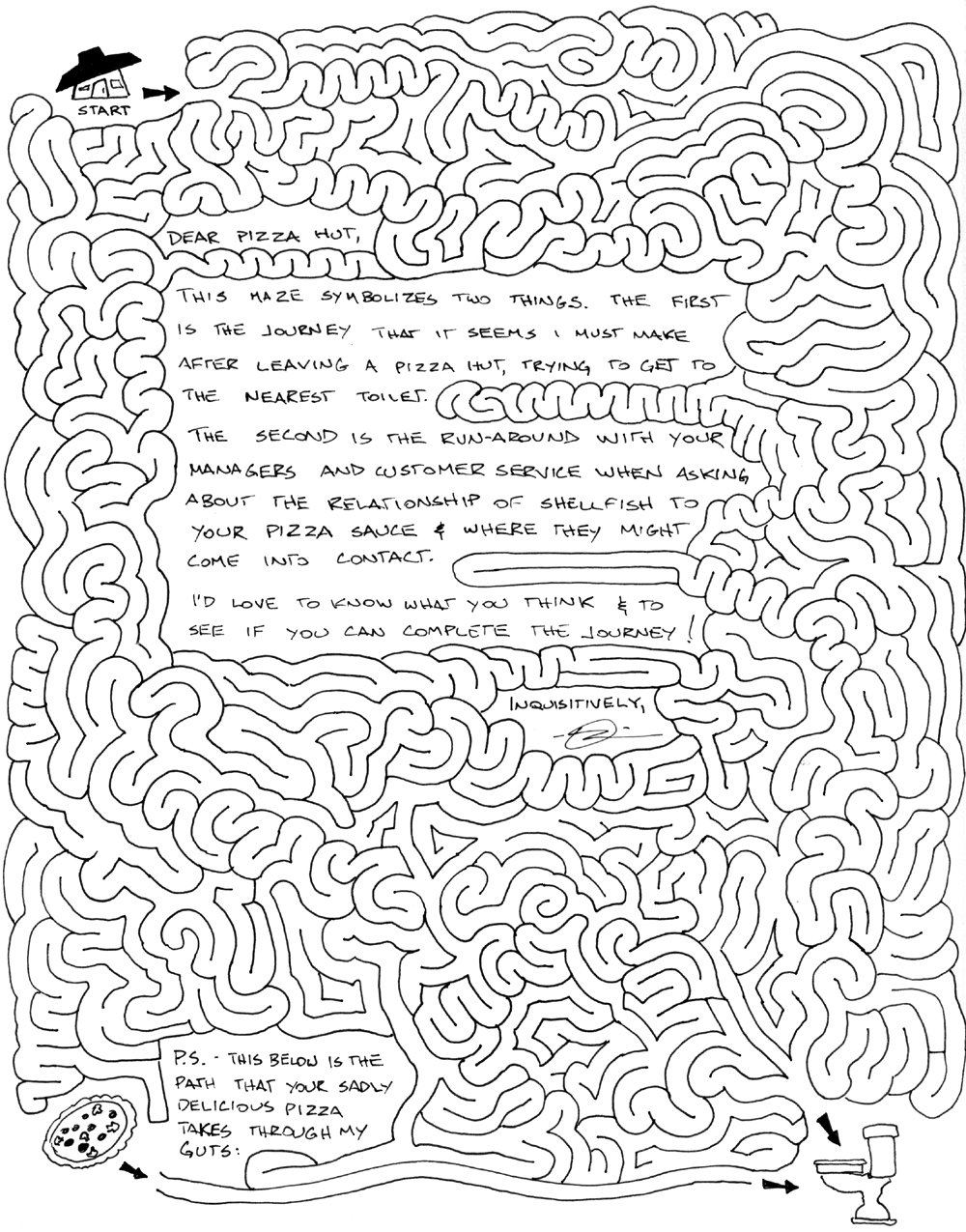 A letter within a maze, for my pals at Pizza Hut. (They never did write back!)