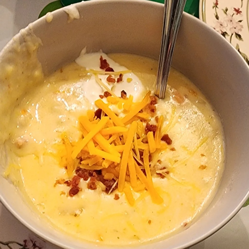 - Slowly stir in milk & half & half. (Season it here too.)
